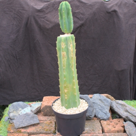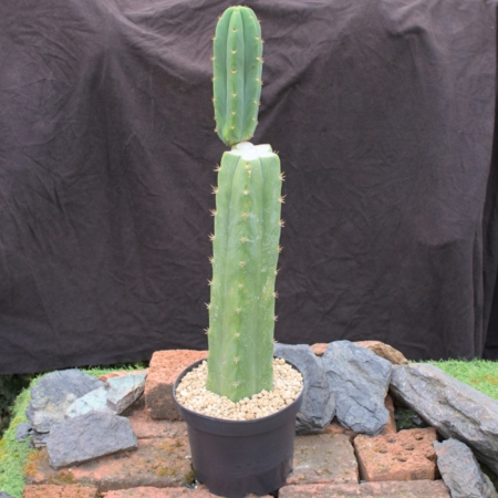 Sie suchen eine elegante und markante Ergänzung für Ihre Kakteensammlung? Hier erhalten Sie ein exklusives Einzelstück: einen unbewurzelten Kopfsteckling des Trichocereus bridgesii, auch bekannt als Bolivian Torch oder Echinopsis lageniformis.