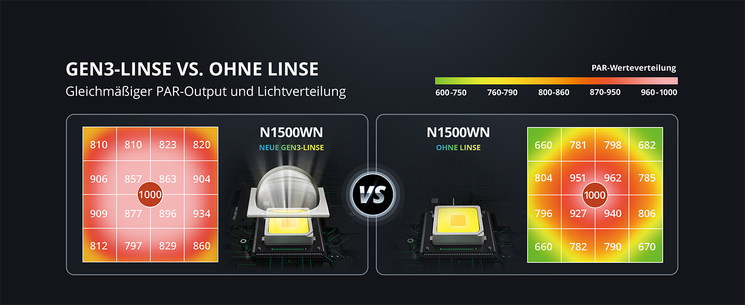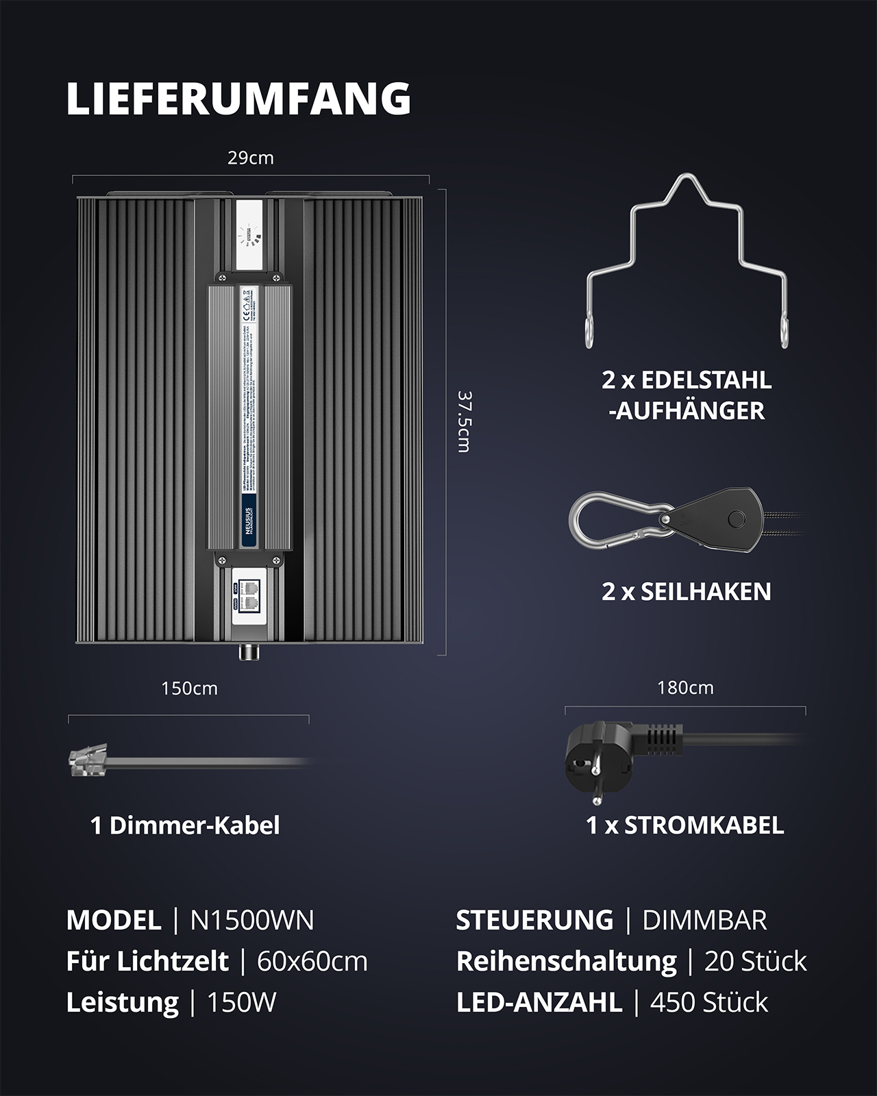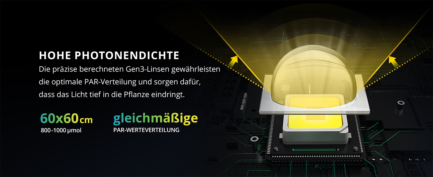 - Maximierte Ernten: Sie haben die Gewissheit, dass Ihre Pflanzen jederzeit optimal mit Licht versorgt sind.
