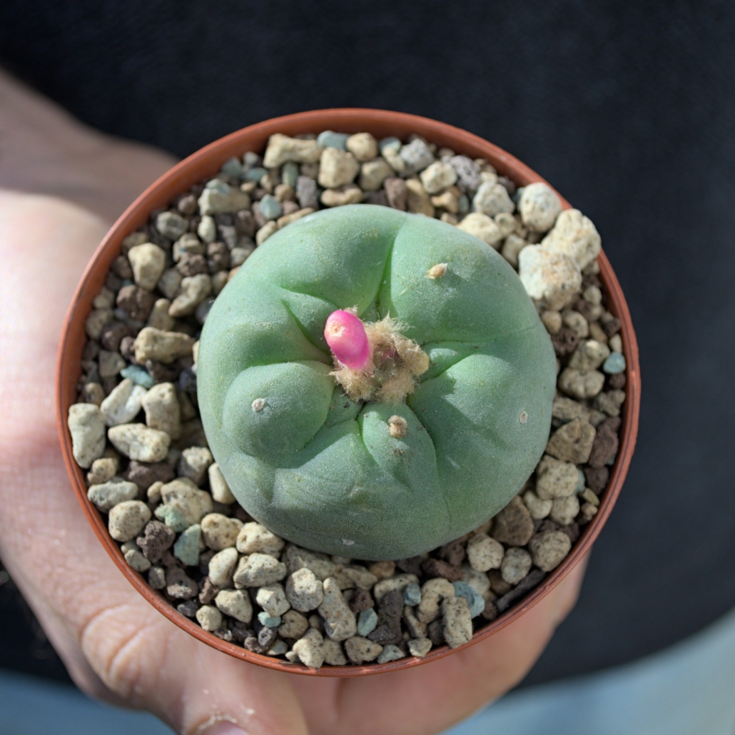 Der Lophophora fricii ist bei Sammlern besonders für seine wunderschöne, oft kräftig pink-rote Blüte geschätzt.