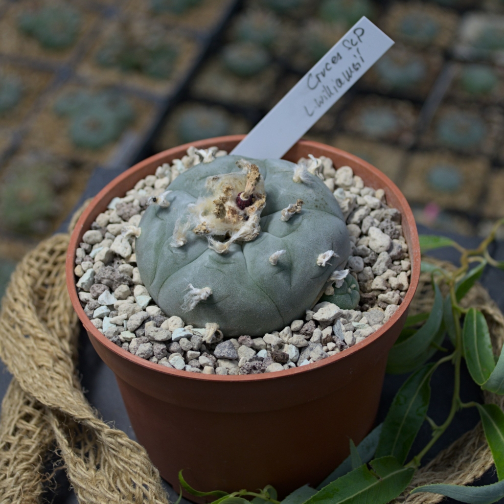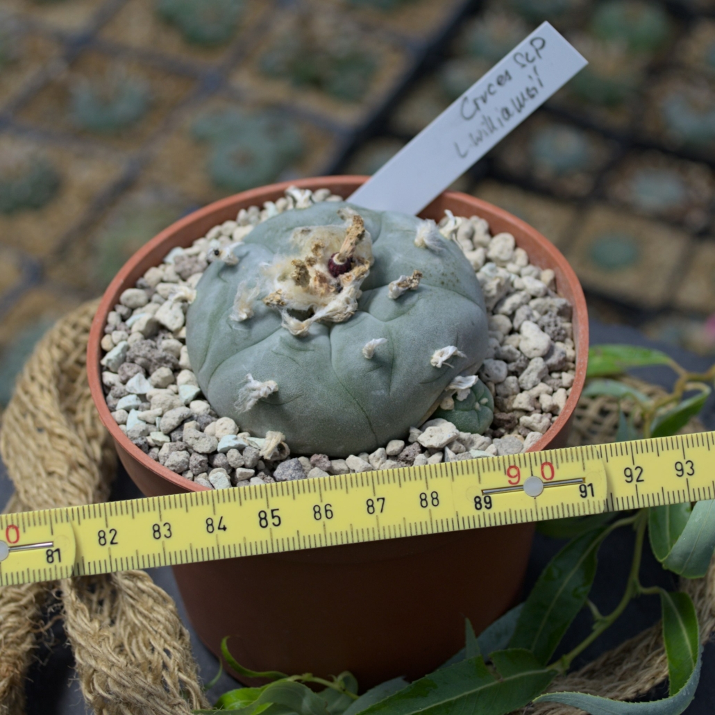 Hier erhältst du ein wahres Prachtstück für Kenner: Einen Lophophora williamsii aus der begehrten Region Las Cruces, San Luis Potosí. Diese Herkunft ist unter Sammlern für ihre charakteristische Ästhetik und Widerstandsfähigkeit bekannt.