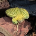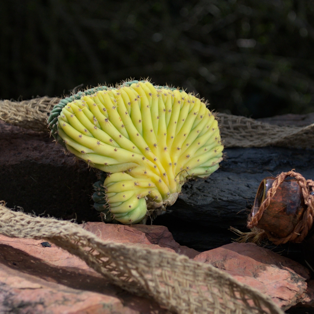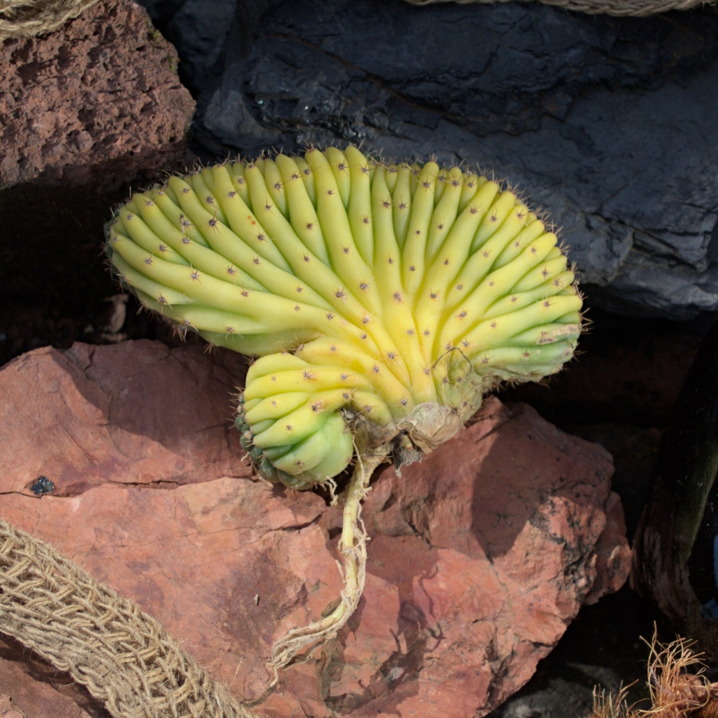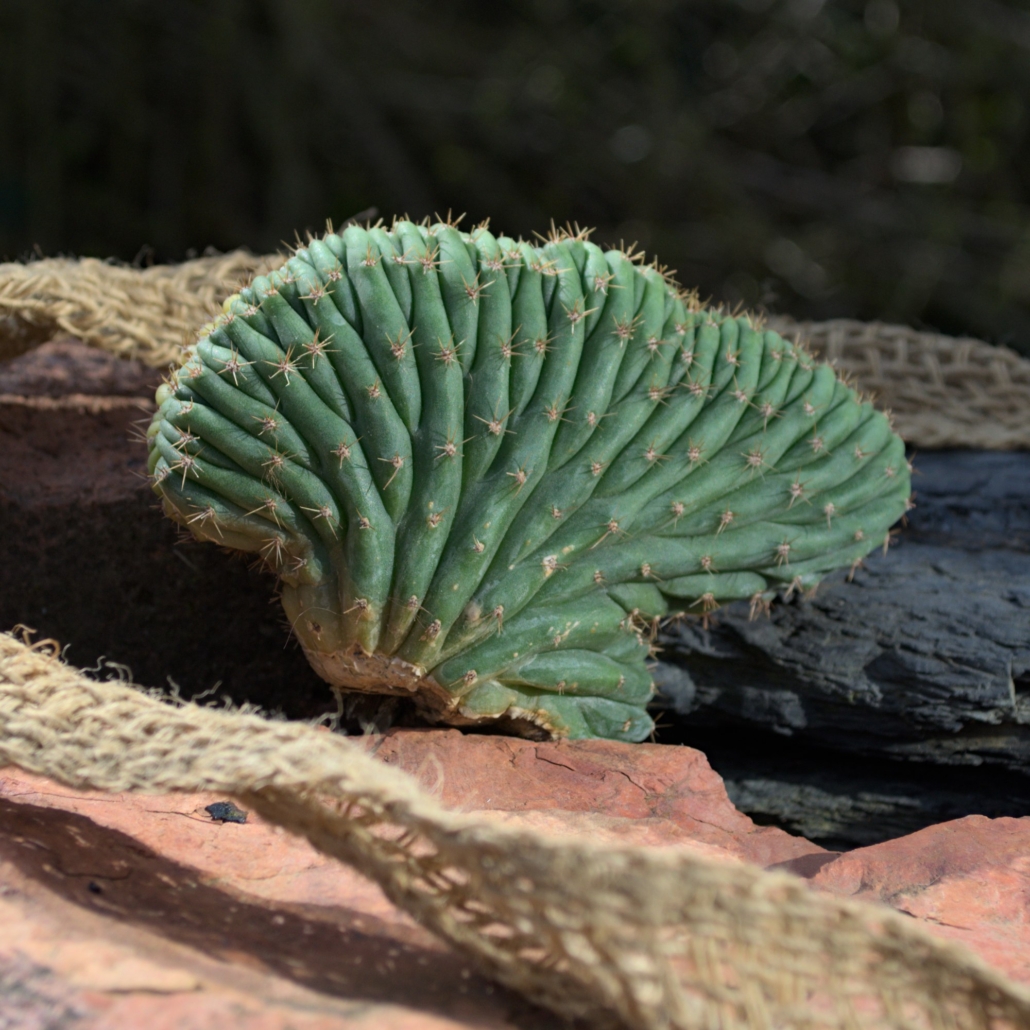 Wuchsform: Als Cristate wächst diese Mutante in fächerartigen Windungen statt in der klassischen Säulenform, was jedes Exemplar zu einer lebenden Skulptur macht.