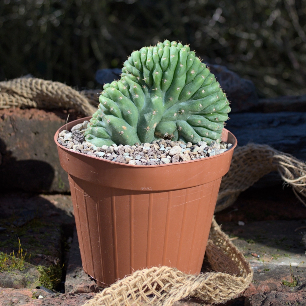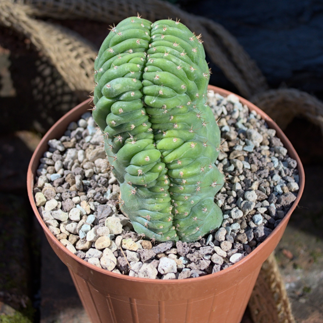 Die Cristat-Form des San Pedro ist bei Kakteenliebhabern besonders begehrt. Durch den unregelmäßigen Wuchs entwickelt sich die Pflanze mit der Zeit immer weiter in verschiedene Richtungen und bildet eine skulpturale Optik, die in keinem Regal fehlen darf.