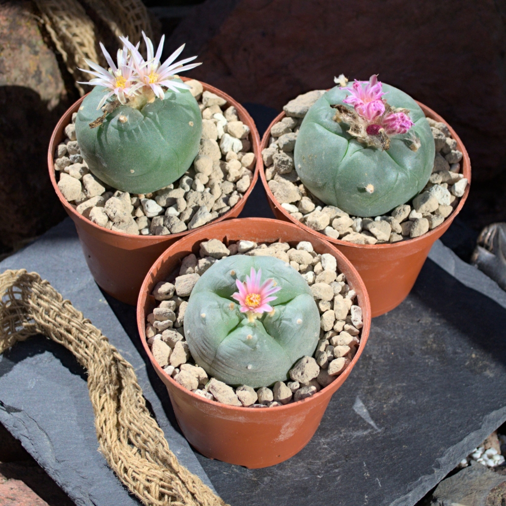 Sichere Dir dieses farbstarke Lophophora-Set – eine seltene Gelegenheit, gezielt verschiedene Blütenfarben in einem Paket zu erhalten!