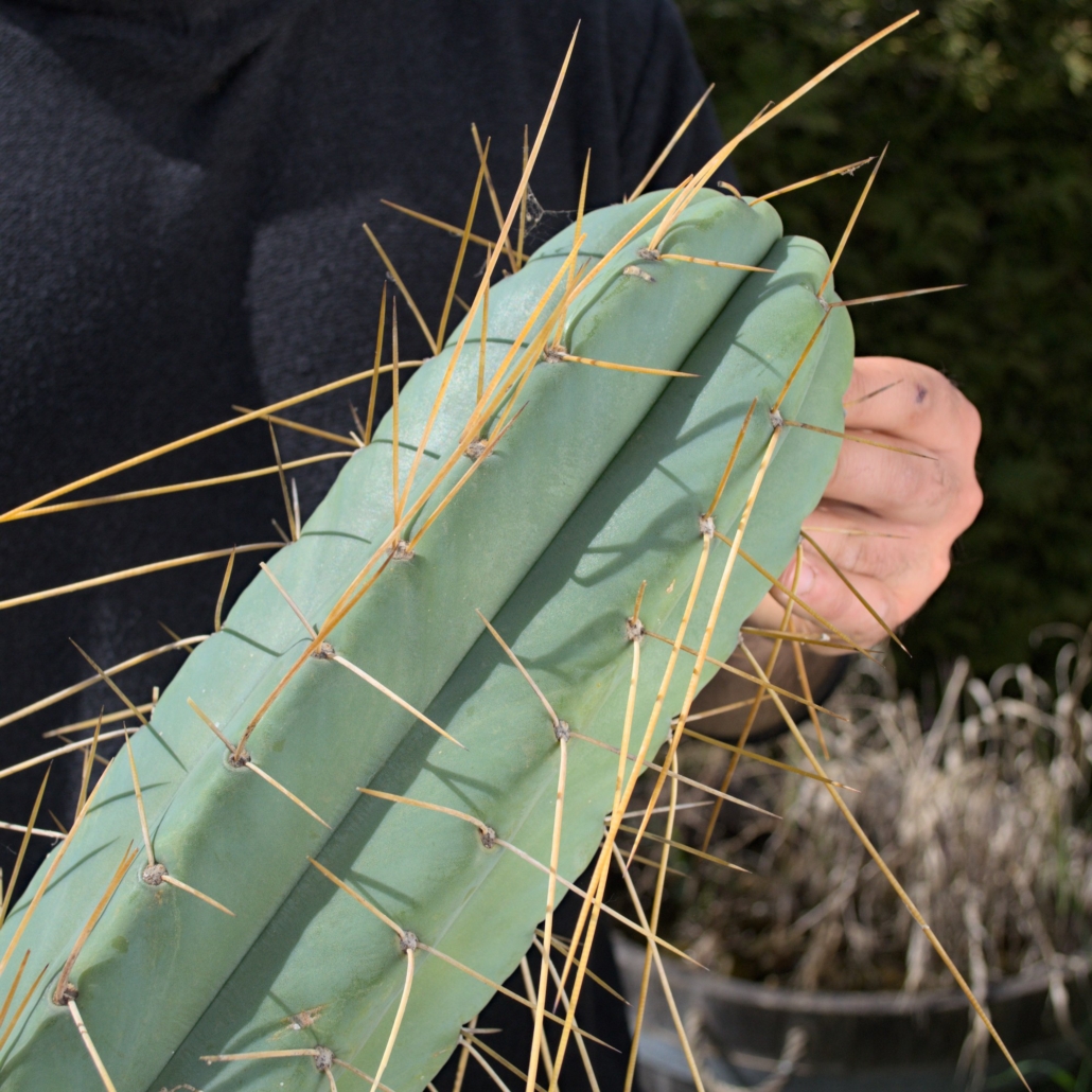 Ein Gigant für Deine Sammlung! Dieser Trichocereus bridgesii (auch bekannt als bolivianischer Fackelkakteen) ist nichts für schwache Nerven. Mit seiner stattlichen Länge von einem halben Meter und der massiven Breite zeigt er die ganze Kraft und Wildheit seiner Herkunft.